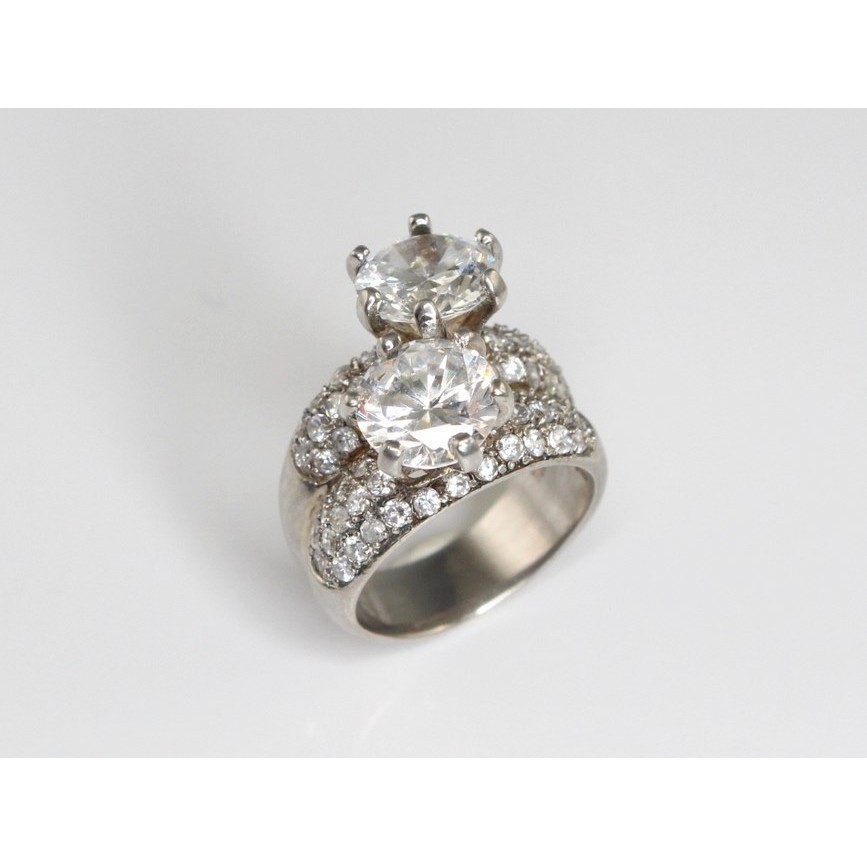 inel statement decorat cu doua opulente zirconii, supraexpuse in prinderi cu elevatie impresionanta