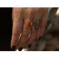 Inel modernist, din argint, decorat cu un anturaj de coral natural sculptat.