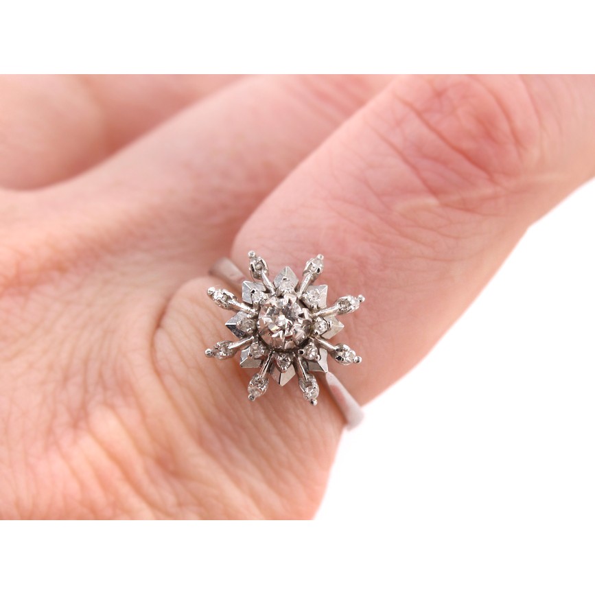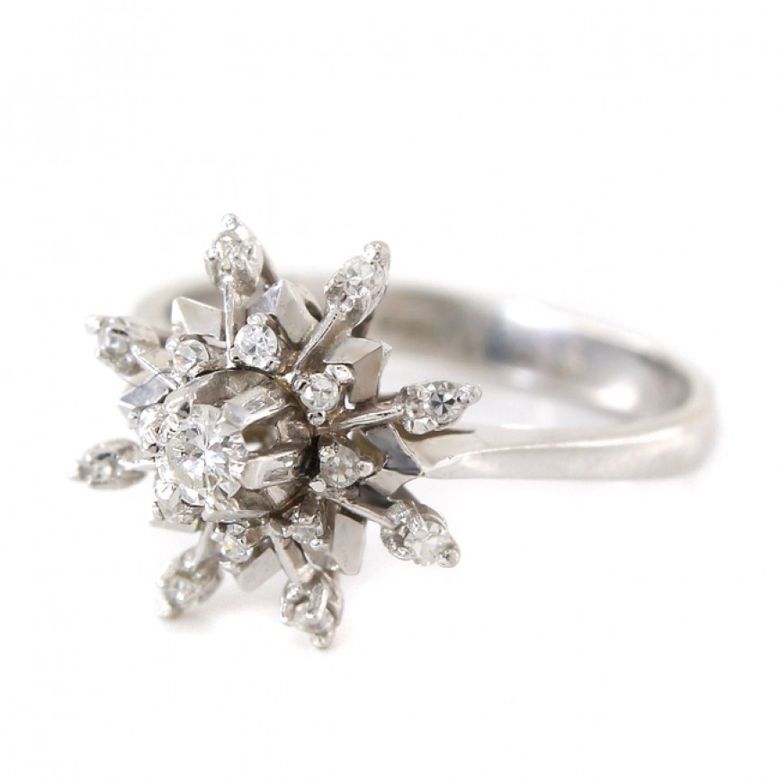 Splendid inel de logodnă, manufacturat în aur alb decorat cu diamante naturale: