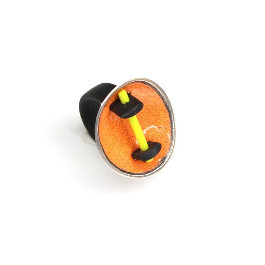 coronament concavizat, realizat din argint decorat cu email vitros, nuanță vibrantă, oranj , cu o fină friză de email negru