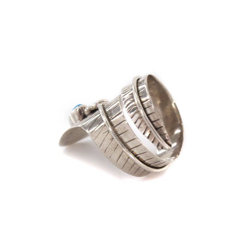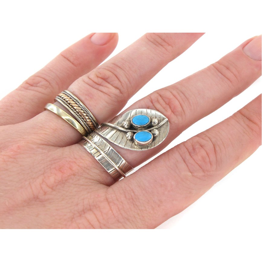 Inedit inel etnic amerindian, din argint , decorat cu anturaje de turcoaze faux.