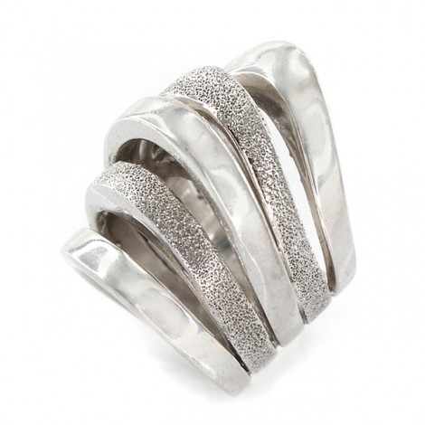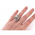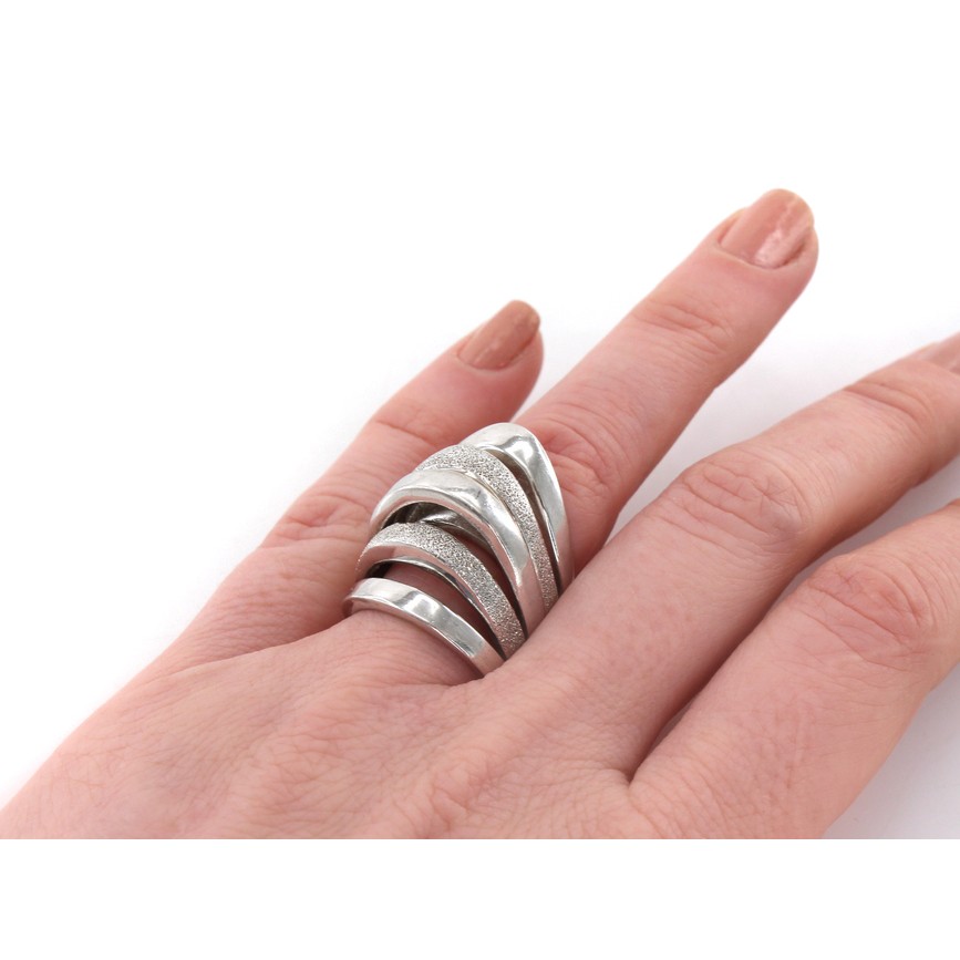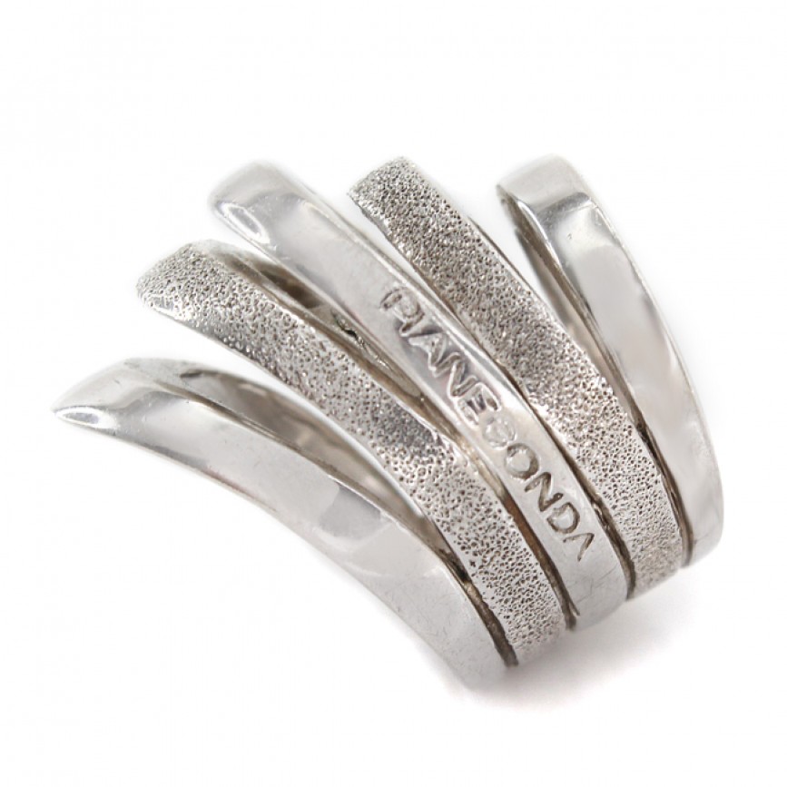 Inel statement, din argint rodinat, cu spectaculos design futurist, purtând inconfundabila amprentă stilistică a designerului Franco Pianegonda.