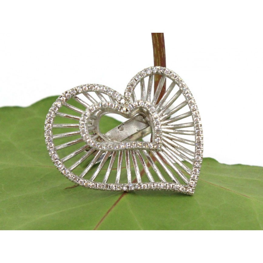Coronamentul amplu volumizat, redă două inimi ale căror siluete sunt încrustate cu anturaje de zirconium multifațetat.