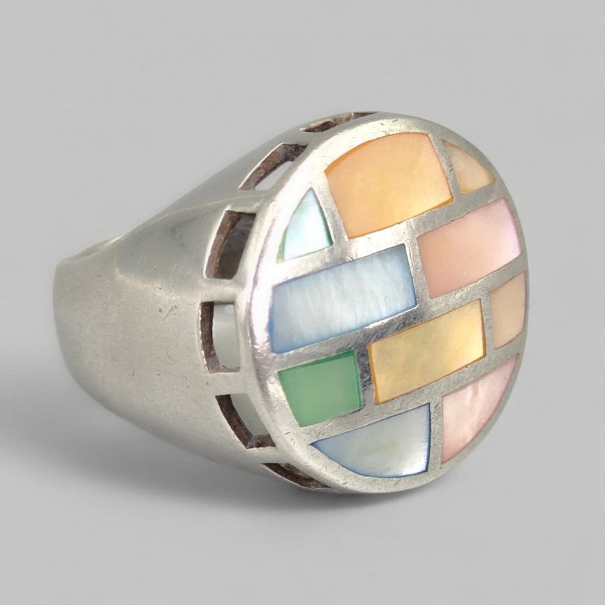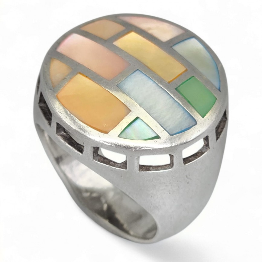 Inel statement din argint cu intarsie de sidefuri naturale | preloved '90s