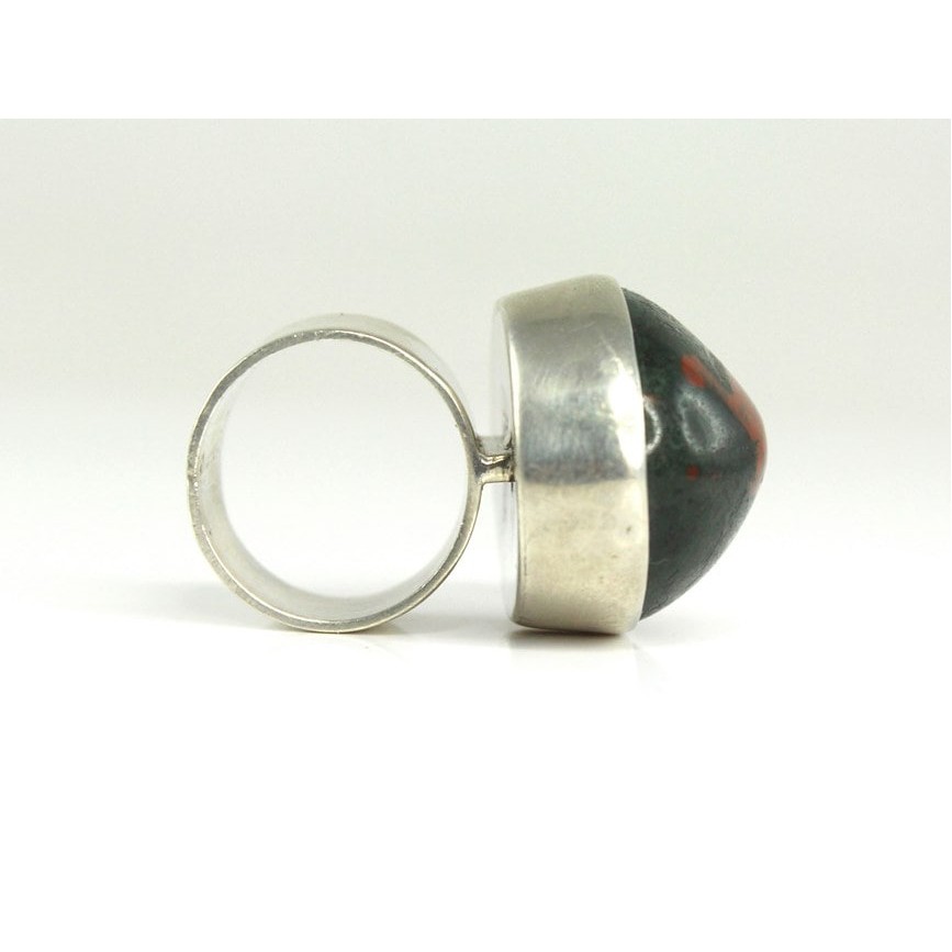 Spectaculos inel statement mid-century Space Age | argint & jasp bloodstone | Danemarca | cca.1960
