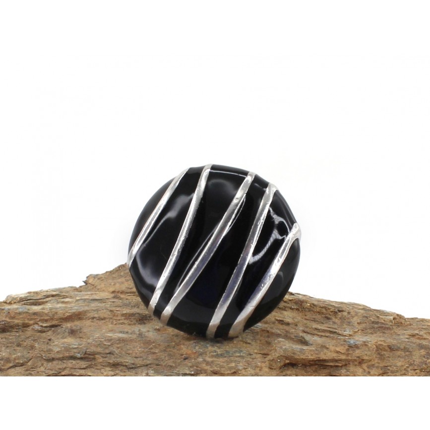Coronament supradimensionat, realizat din masă de email negru și argint.