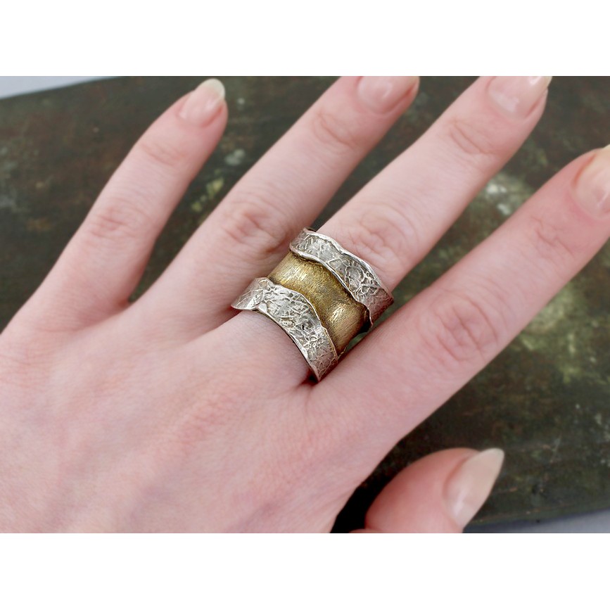 Vandut Inel statement unisex  din argint cu accente aurite | design contemporan |  Statele Unite