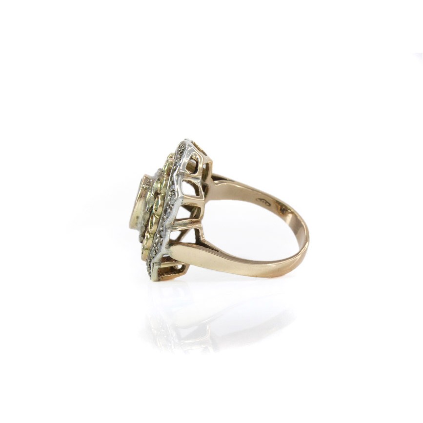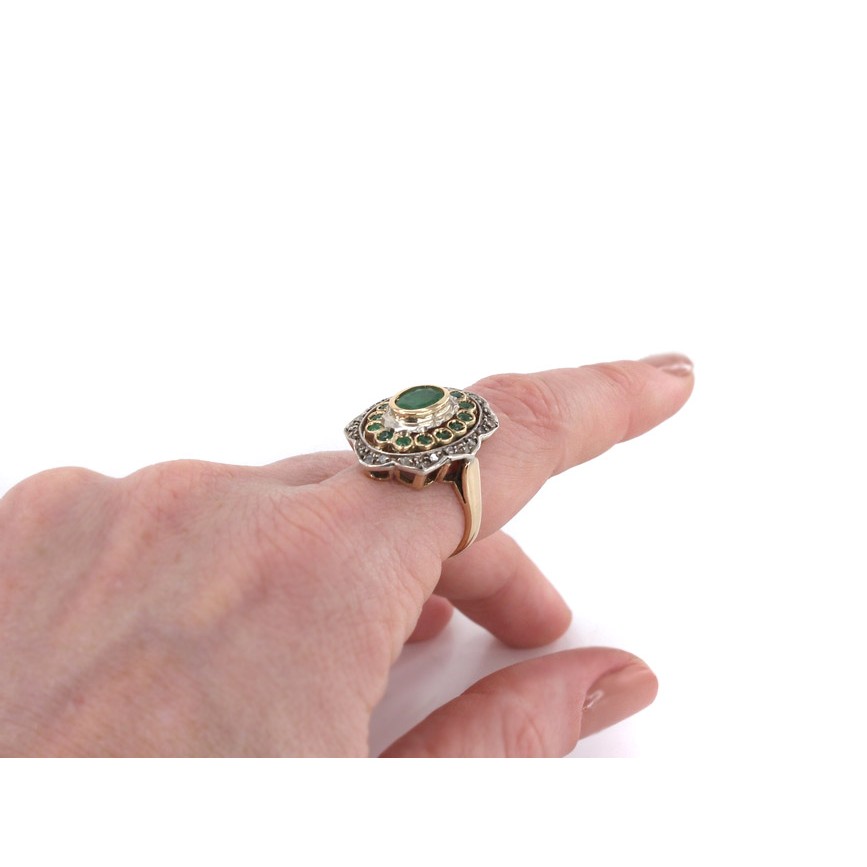 -36% Vandut Inel Victorian Revival decorat cu diamante și smaralde naturale | manufactură în aur și argint | anii '70