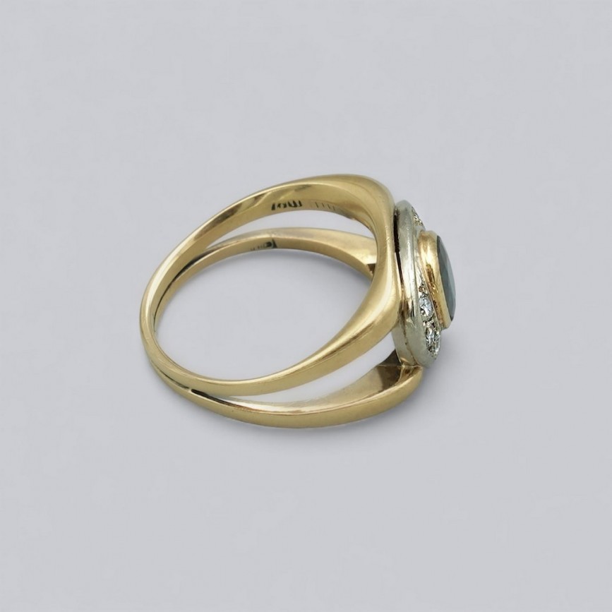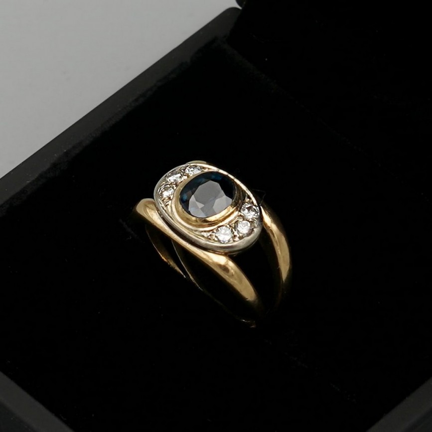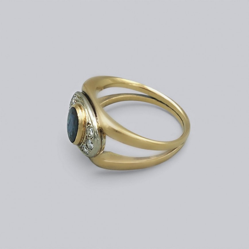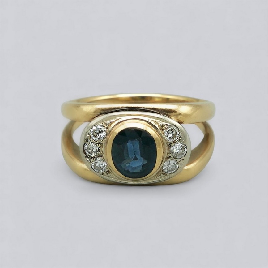 Inel retromodernist din aur galben 18k decorat cu diamante naturale 0.23 ct și safir natural 1 ct | Italia cca. 1960 - 1970