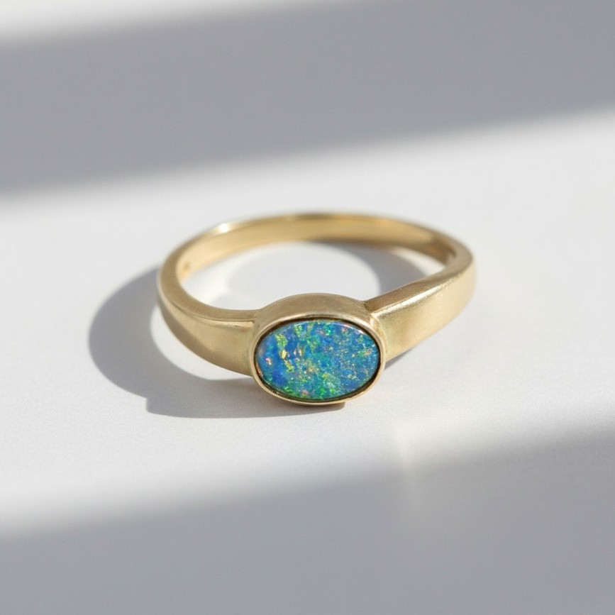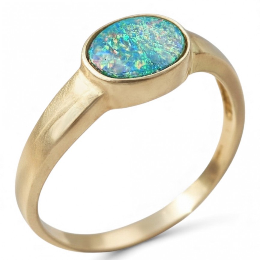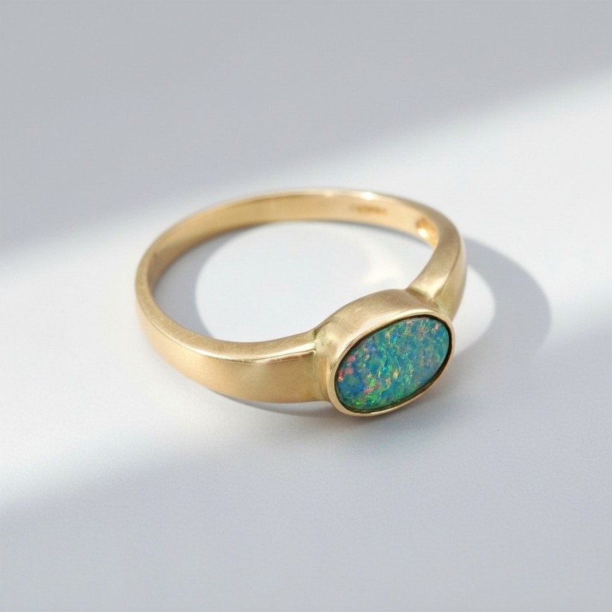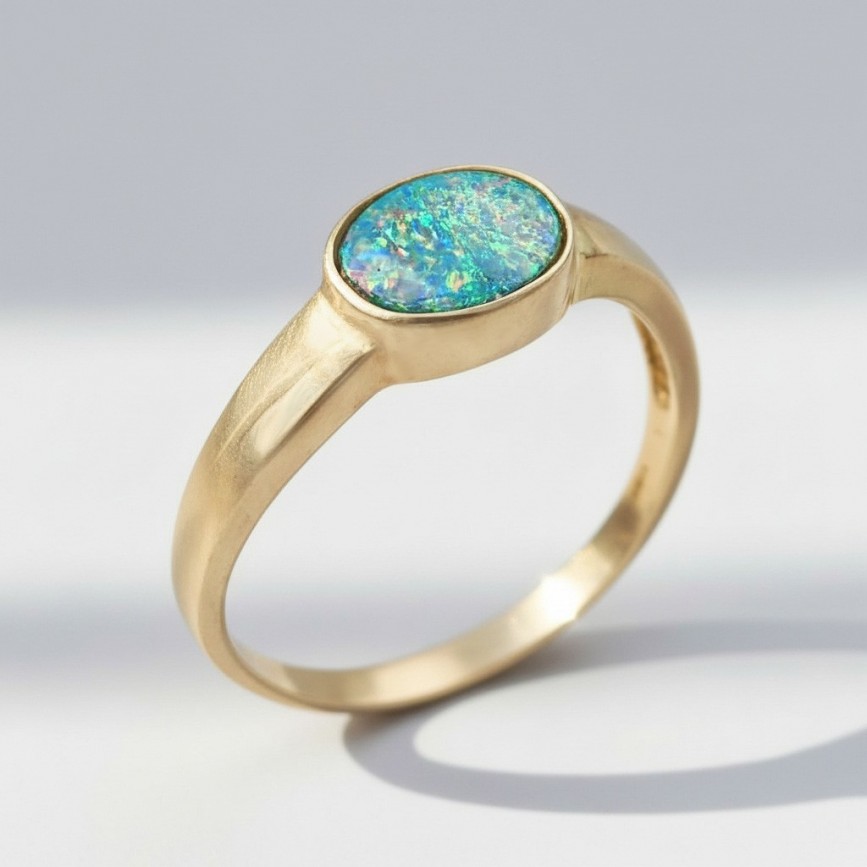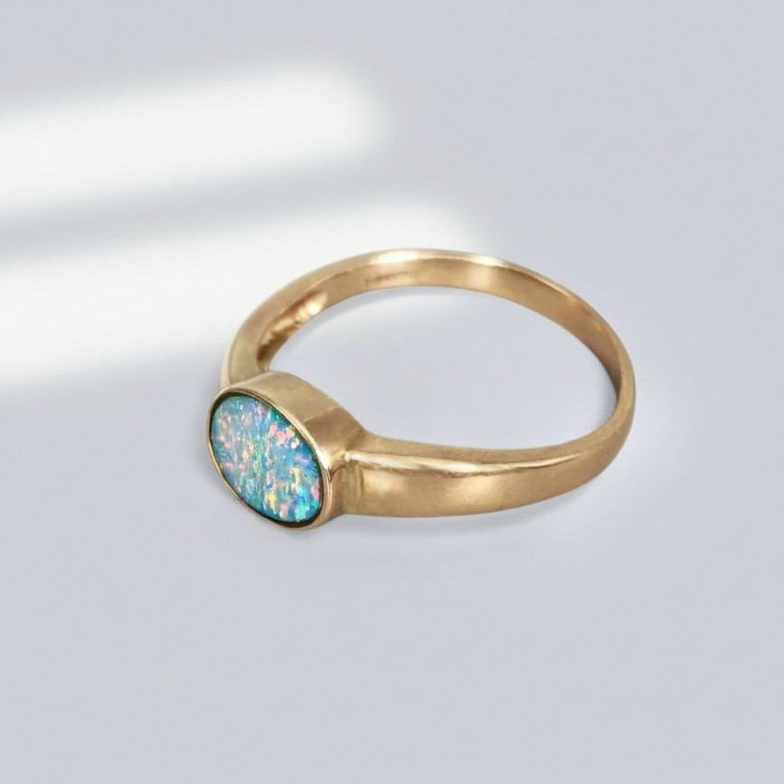 aur galben 14k turnat, presat și cizelat; opal natural australian