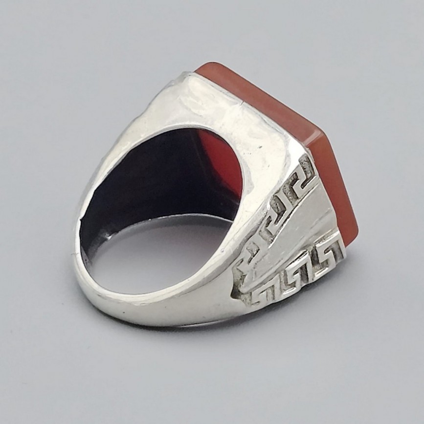 Impresionant inel statement unisex manufacturat în argint & carneol natural Aqeeq.