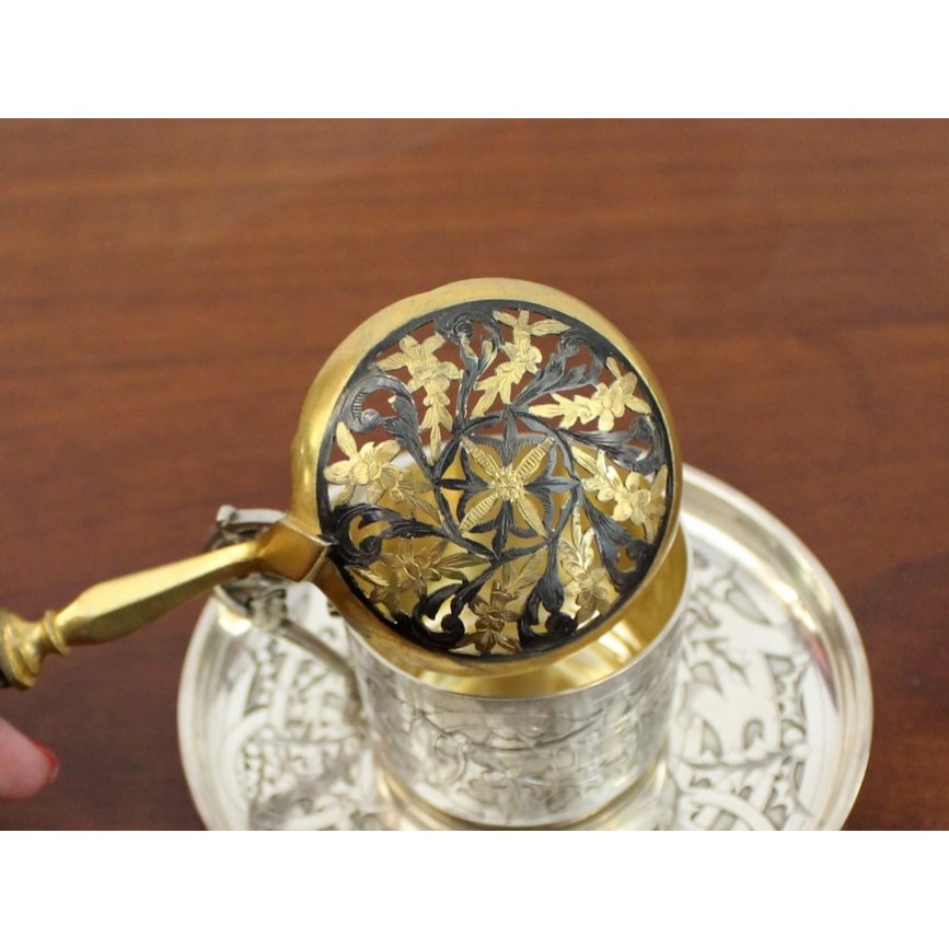 Sită minuțios ajurată manual, cu motive florale, patinate pe revers cu niello.