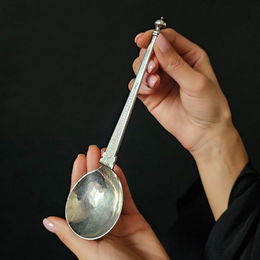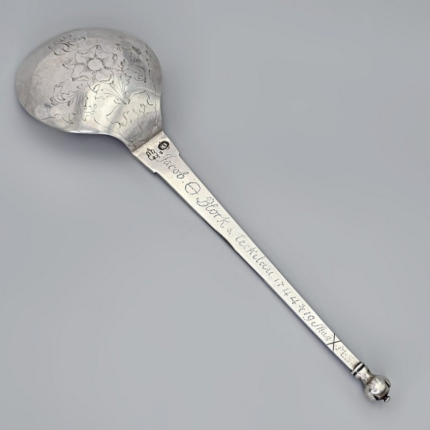 Lingură ceremonială scandinavă din argint , datată 1744