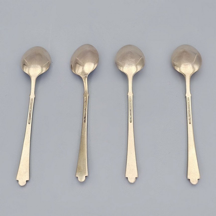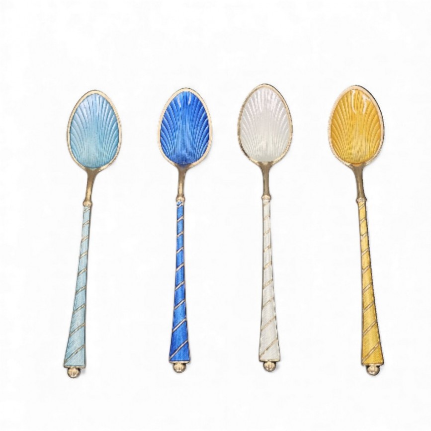 Lot de 4 lingurițe demitasse din argint aurit și emailat basse-taille.