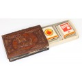 etui pentru doua cutii de chibrituri, stilizatv sub forma unei carti imbracate in piele naturala