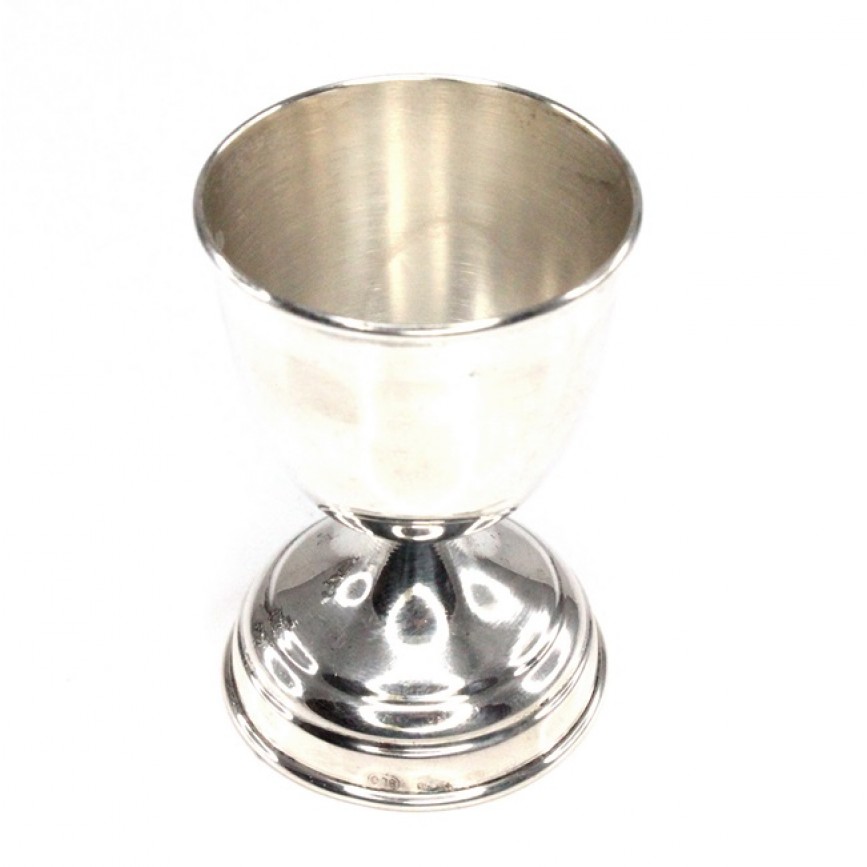Pahar din argint, pentru copii, elaborat sub forma unui pocal miniatural, poate servi și ca suport pentru un ou fiert.