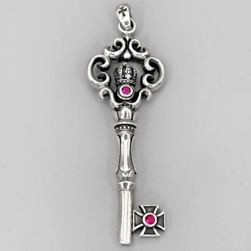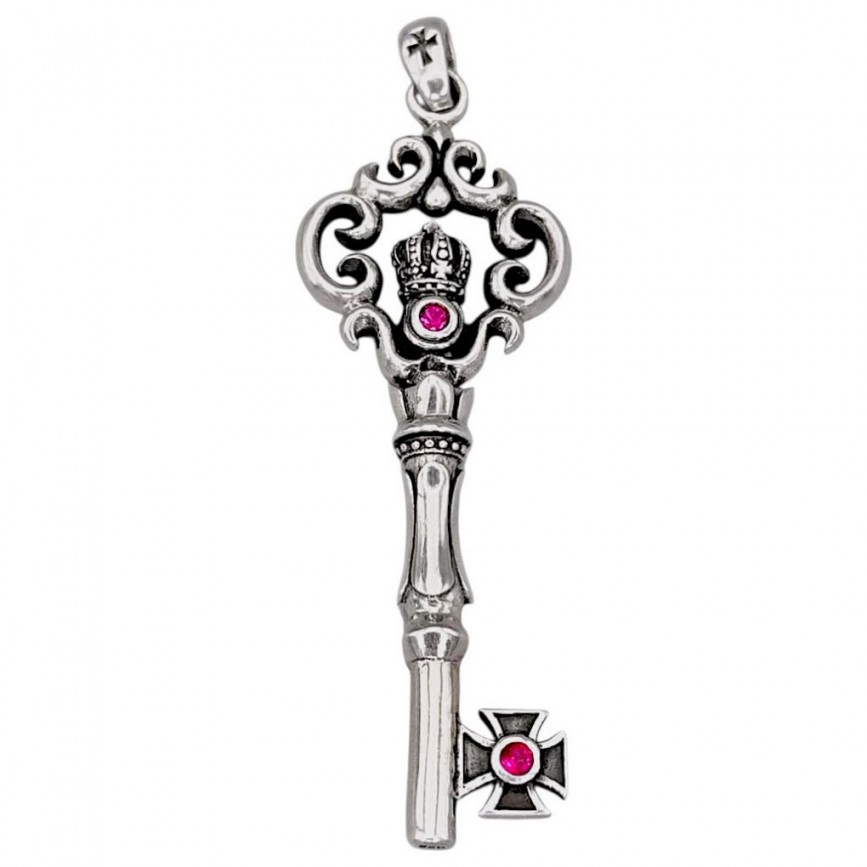 Pandant ' Royal Key ' din argint masiv & rubine de sinteză