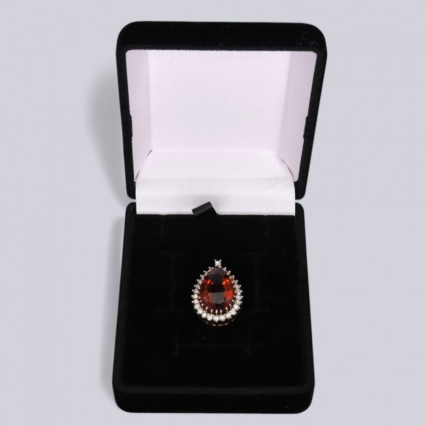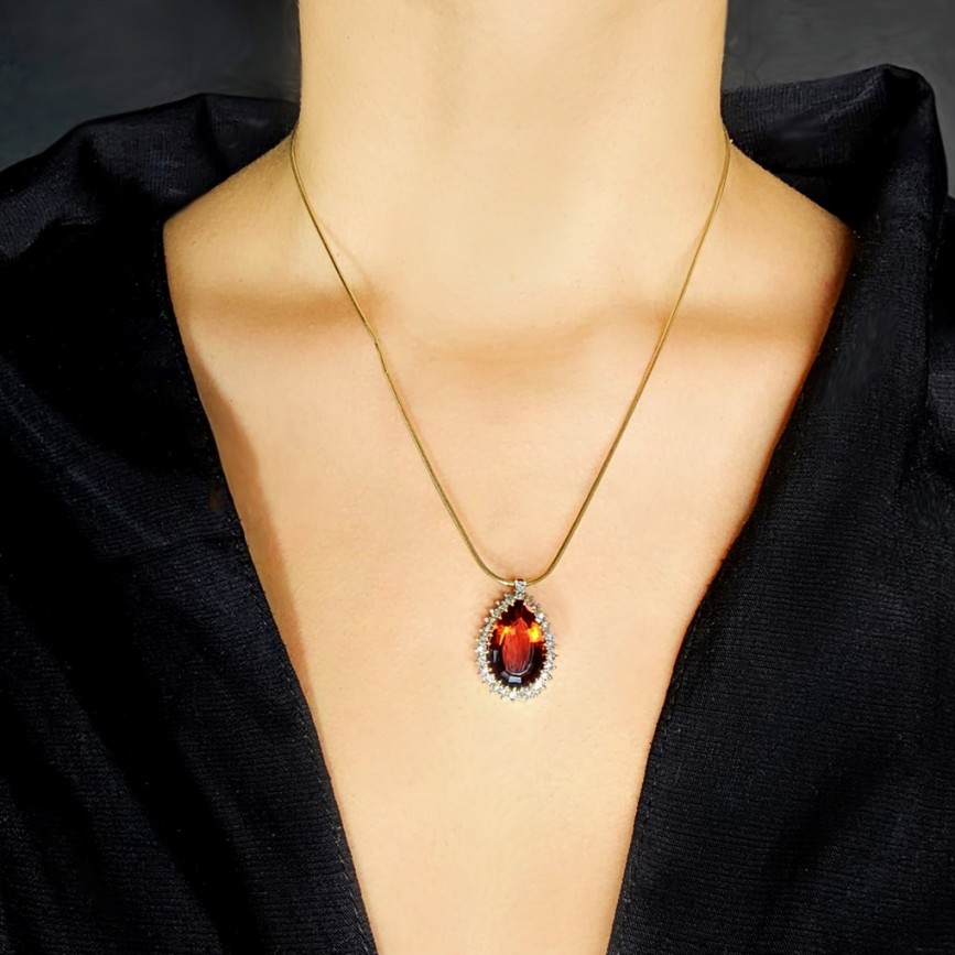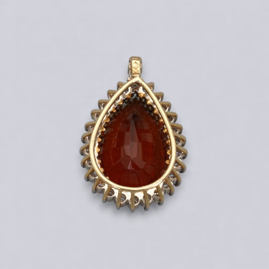 Pandant cocktail din aur galben 18k și platină decorat cu diamante și cuarț portocaliu natural