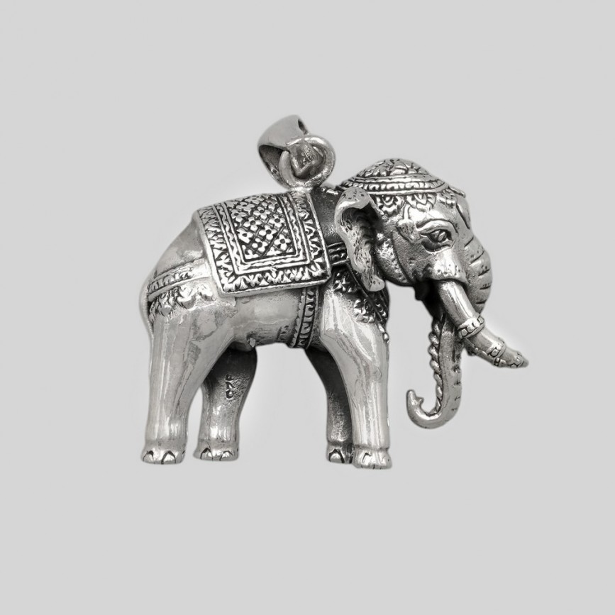 Pandant statement unisex, din argint masiv, elaborat sub forma unui elefant