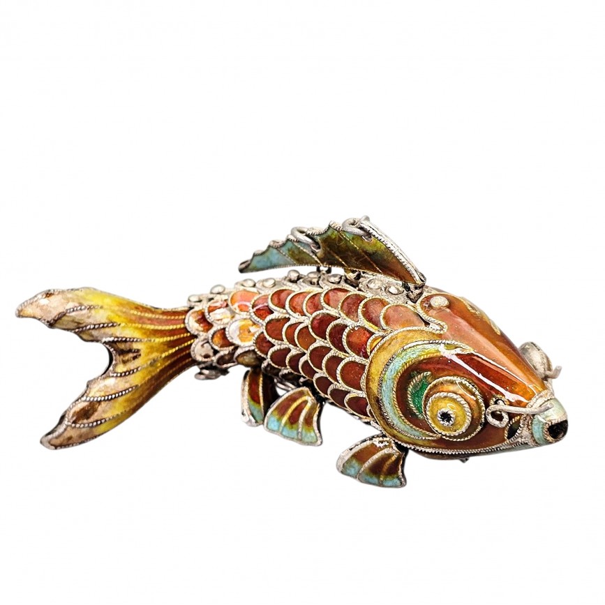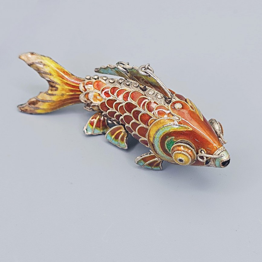 Vechi pandant vinaigrette din argint emailat, stilizat sub forma unui pește Koi | China cca. 1950 - 1970