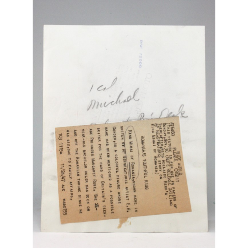fototelegrama ( wirephoto/phototelegraphy) ilustrand un portret al Regelui Mihai, realizat de artistul E.H Gunter