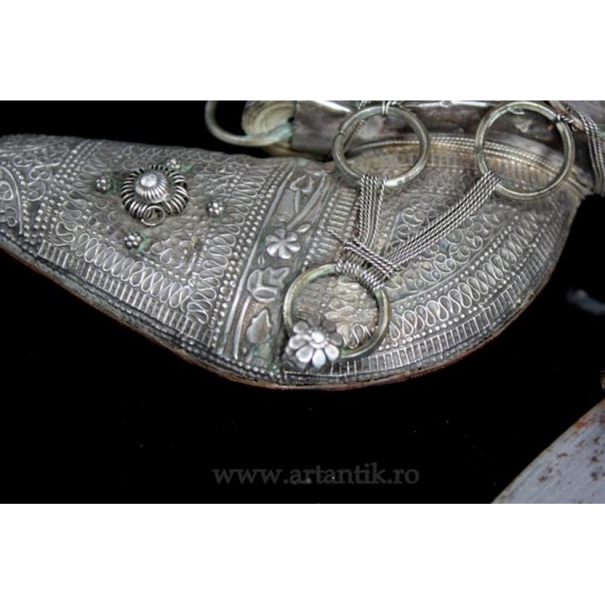 teaca este realizata din piele de camila impracata in straturi succesive de argint