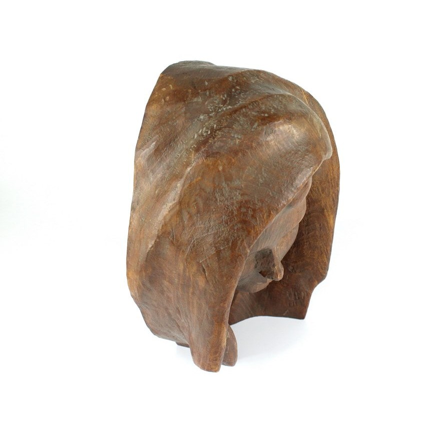 Sculptură modernistă în lemn de măslin | Fecioara Maria | lucrare semnată | cca. 1950 -1970 | Italia