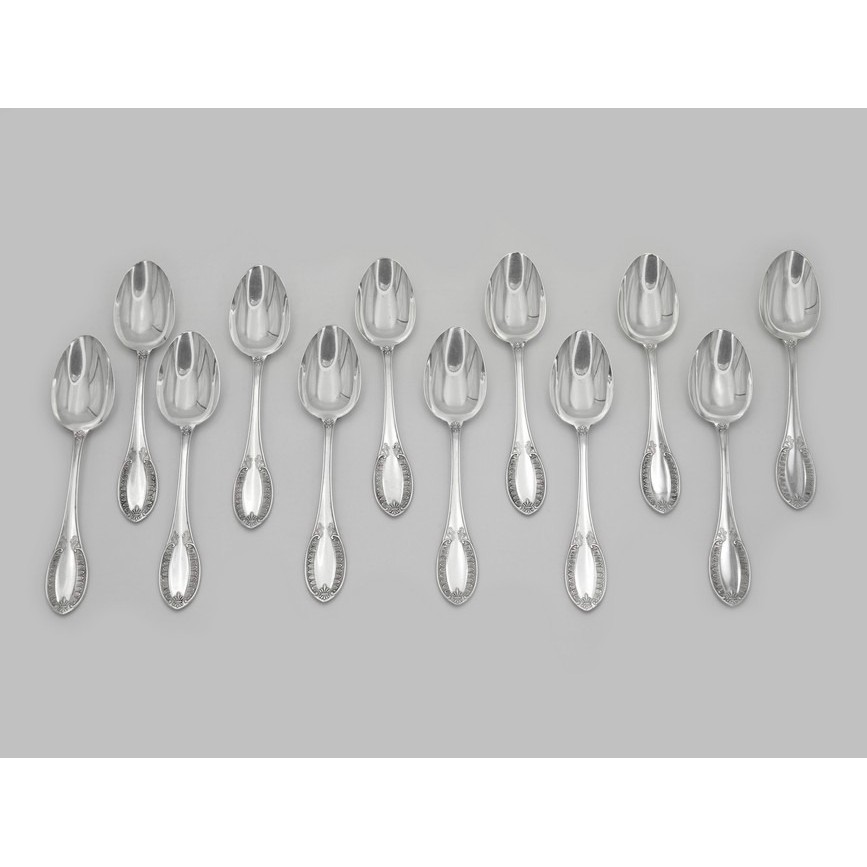 Serviciu din format din 12 lingurițe din argint pentru servirea deserturilor, rafinat ornamentate în stil Empire.