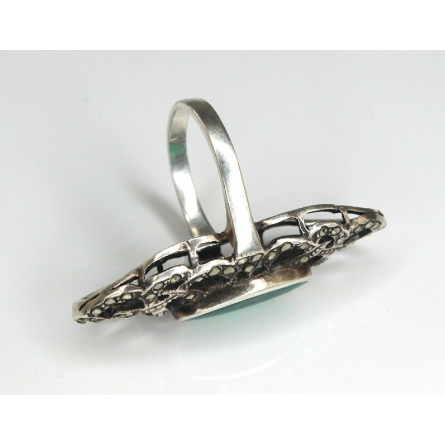 vechi set : inel si cercei : argint & agate verzi