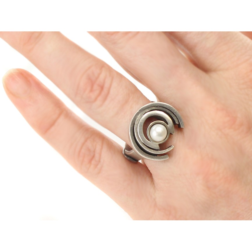 manufactură în argint turnat , presat, texturat si cizelat ; perle naturale de cultură