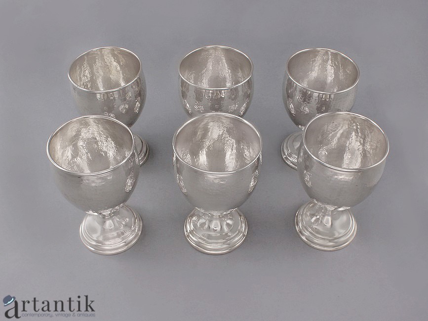 Set de 6 pocale din argint pentru servirea vinului și a apei | argint martelat | cca. 1935