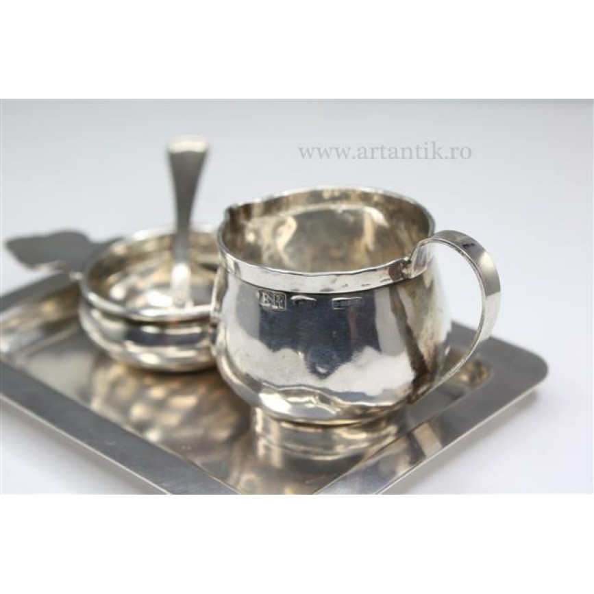 letiera cu picurator si ansa. recipient cizelat manual prin ciocanire