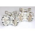 pereche de solniţe cu picior profilat in patru agrafe leonice, stilizate cu godroane alungite