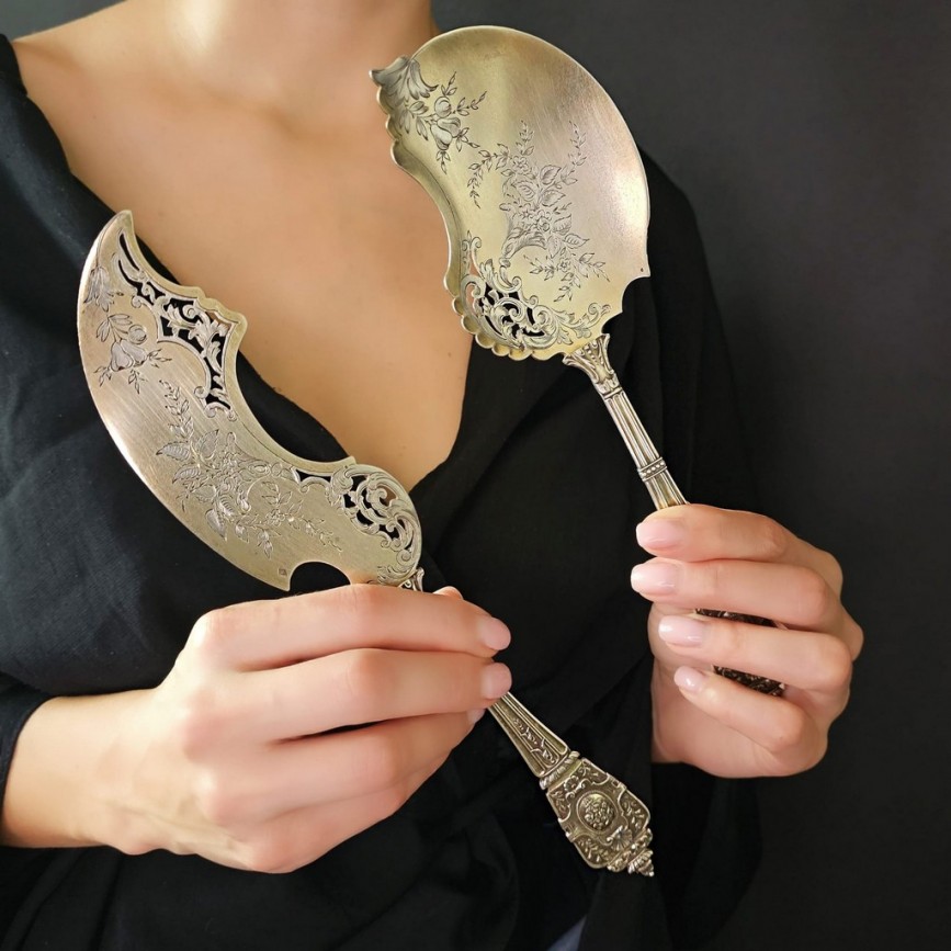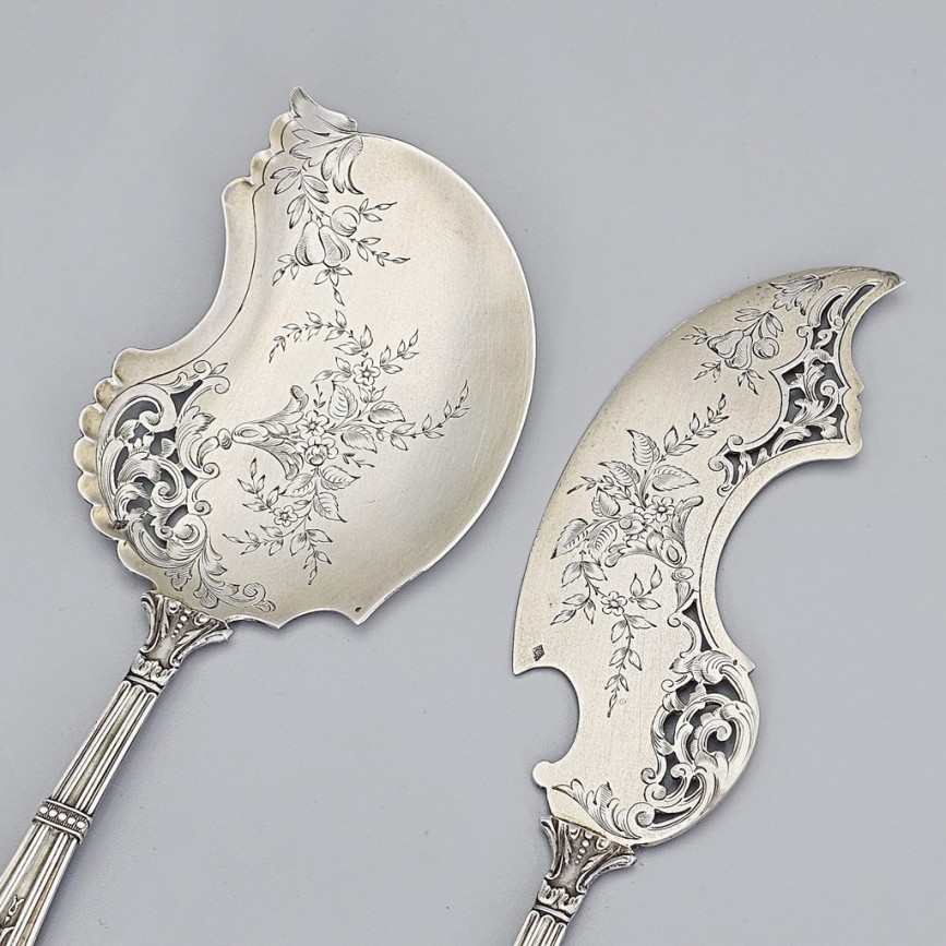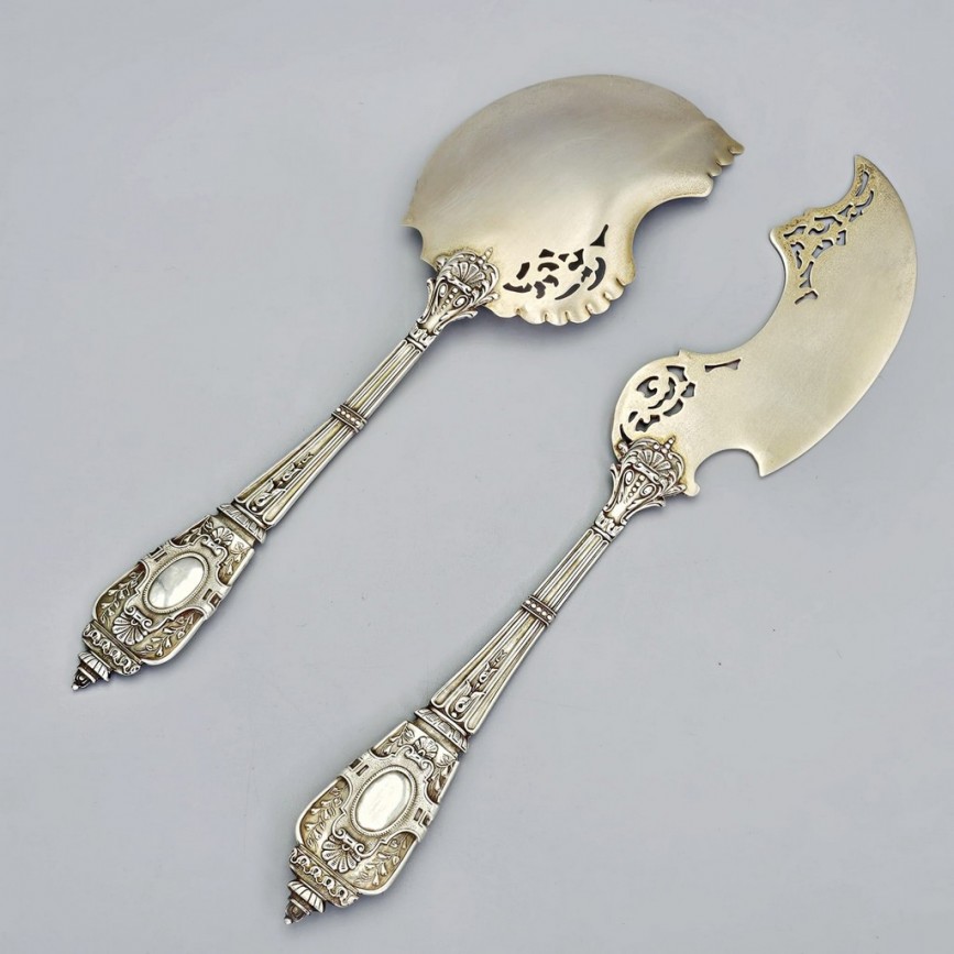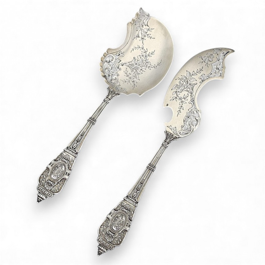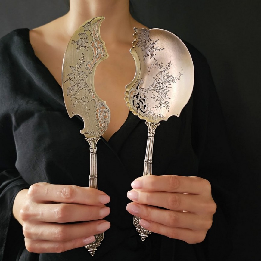 Garnitură de tacâmuri ne0-rococo din argint pentru servirea tortului