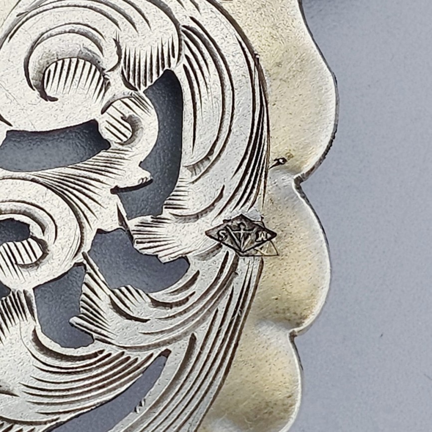 poanson pictogramic de atelier francez, aparținând orfevrăriei Moussami - Storm înființată în anul 1897 în Paris, Rue du Temple nr. 120