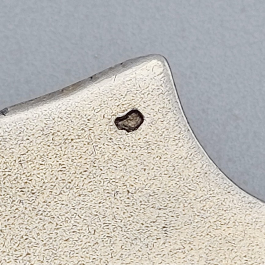 Gravura fină, pusă în valoare de suprafețe înnoollate cu duscrete accente de aurire ( gold wash ).