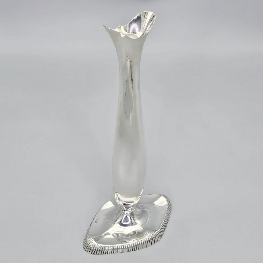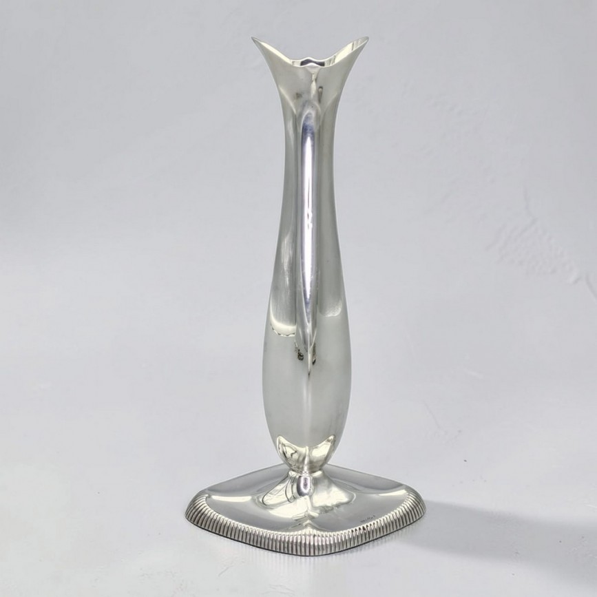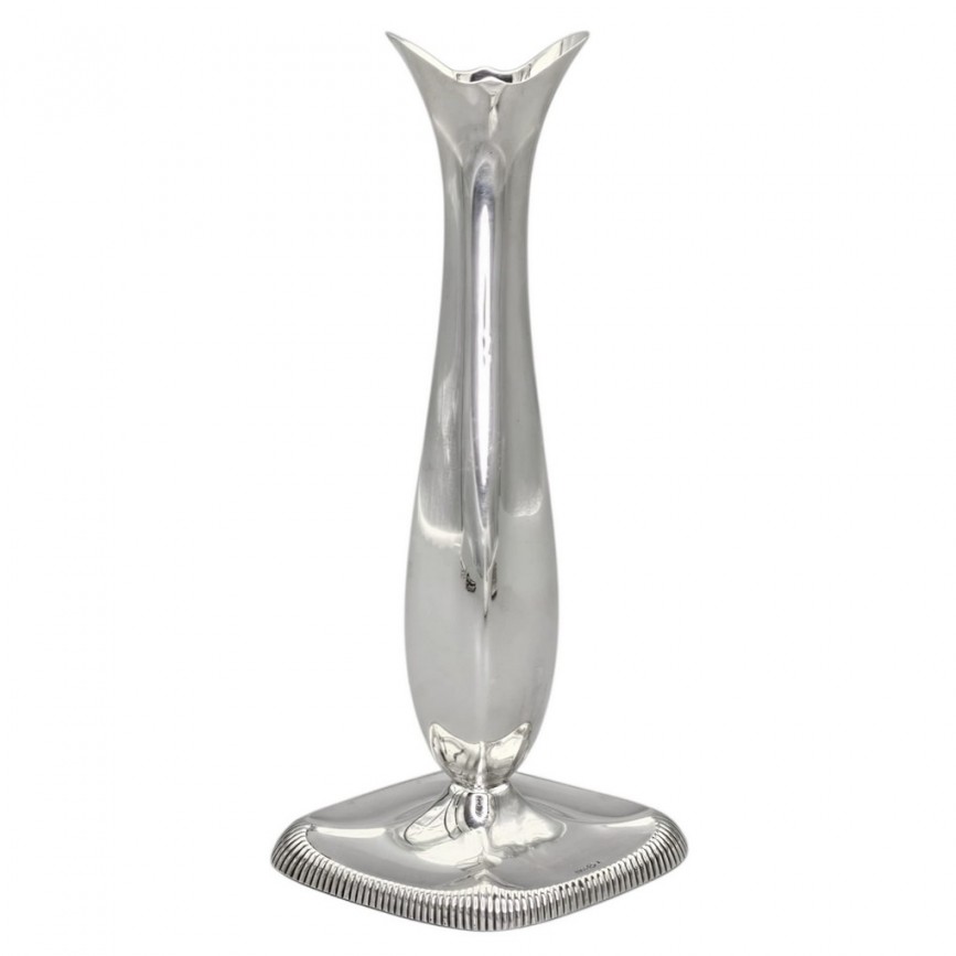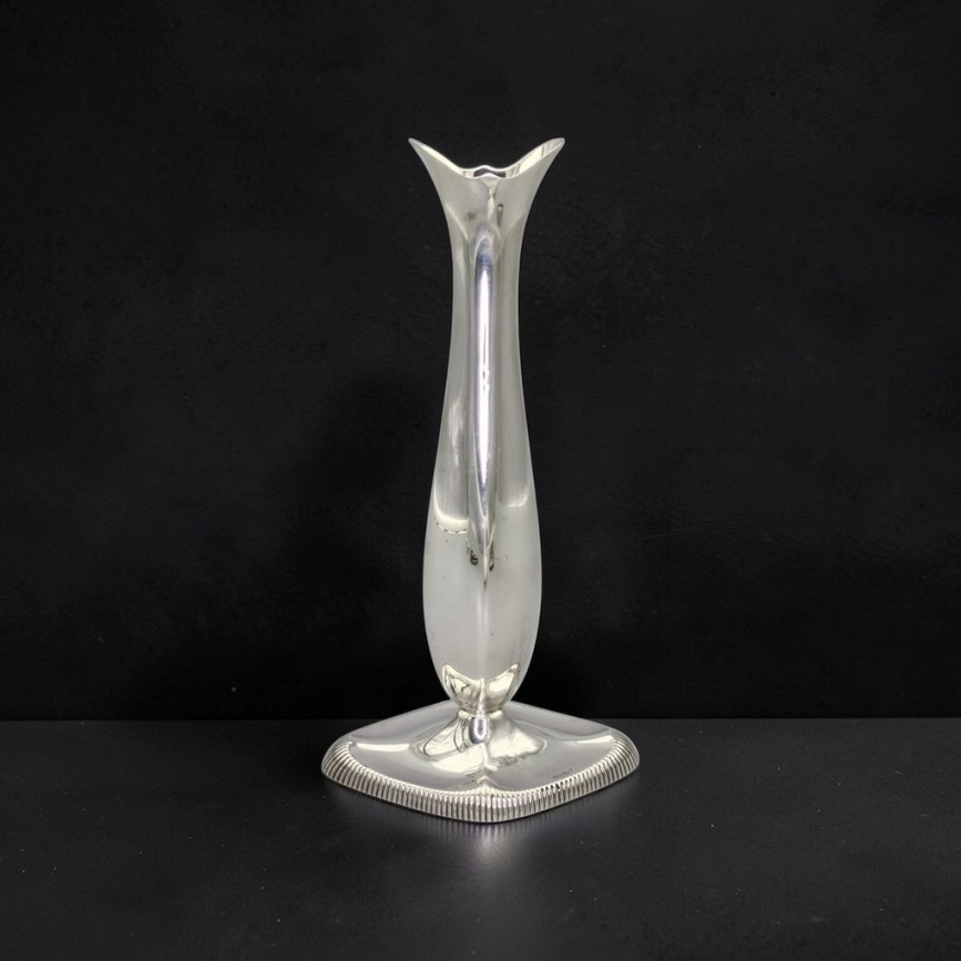 Elegantă vază soliflor de perioadă Skønvirke realizată din argint în atelierul norvegian Thorvald Marthinsen,