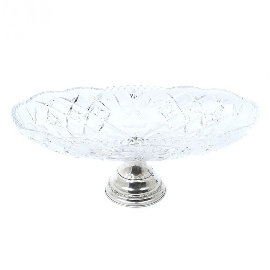 Elegant platou tip tazza - centru de masă cu bol din cristal și picior din argint.