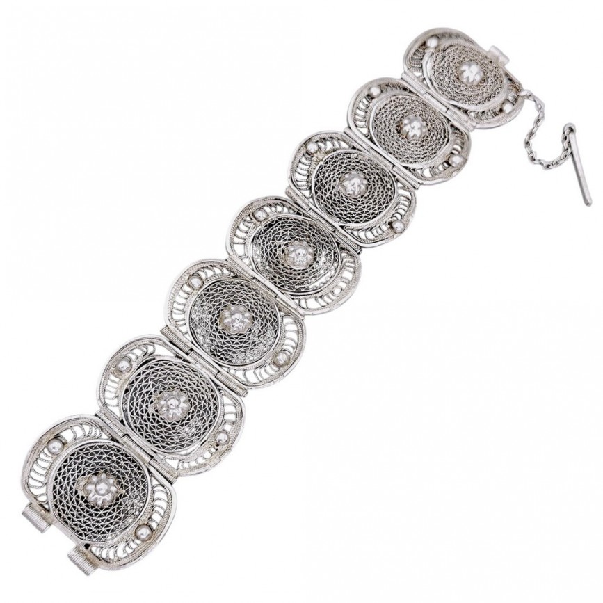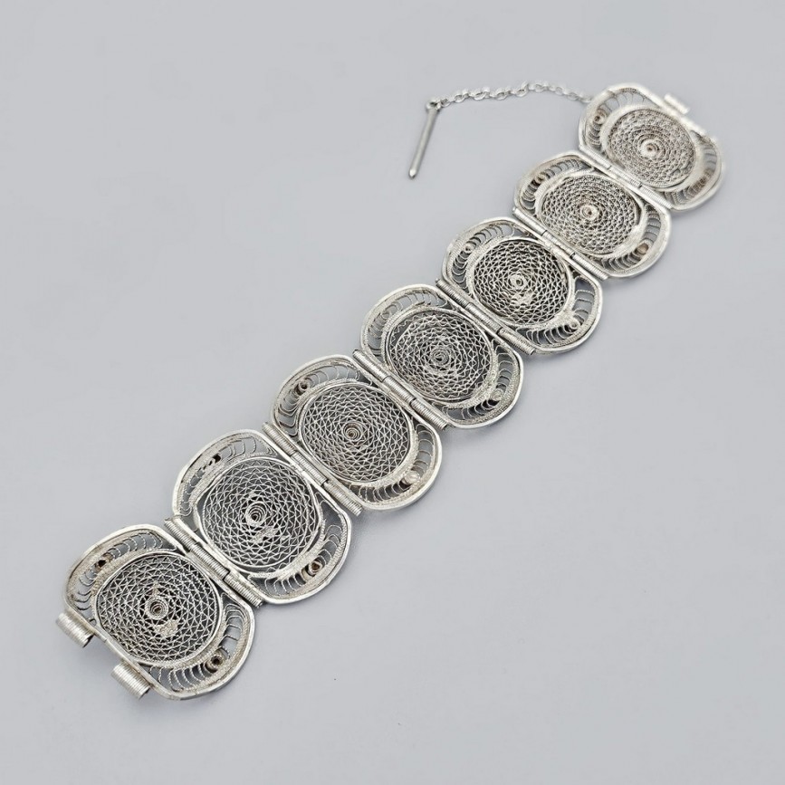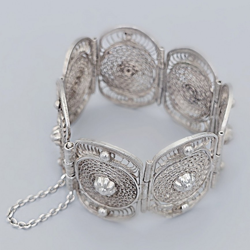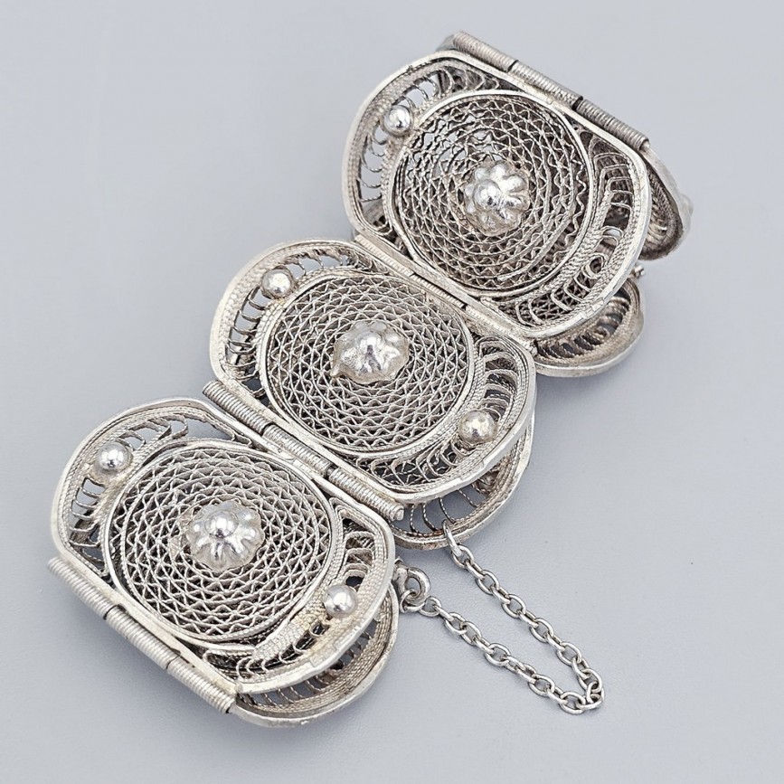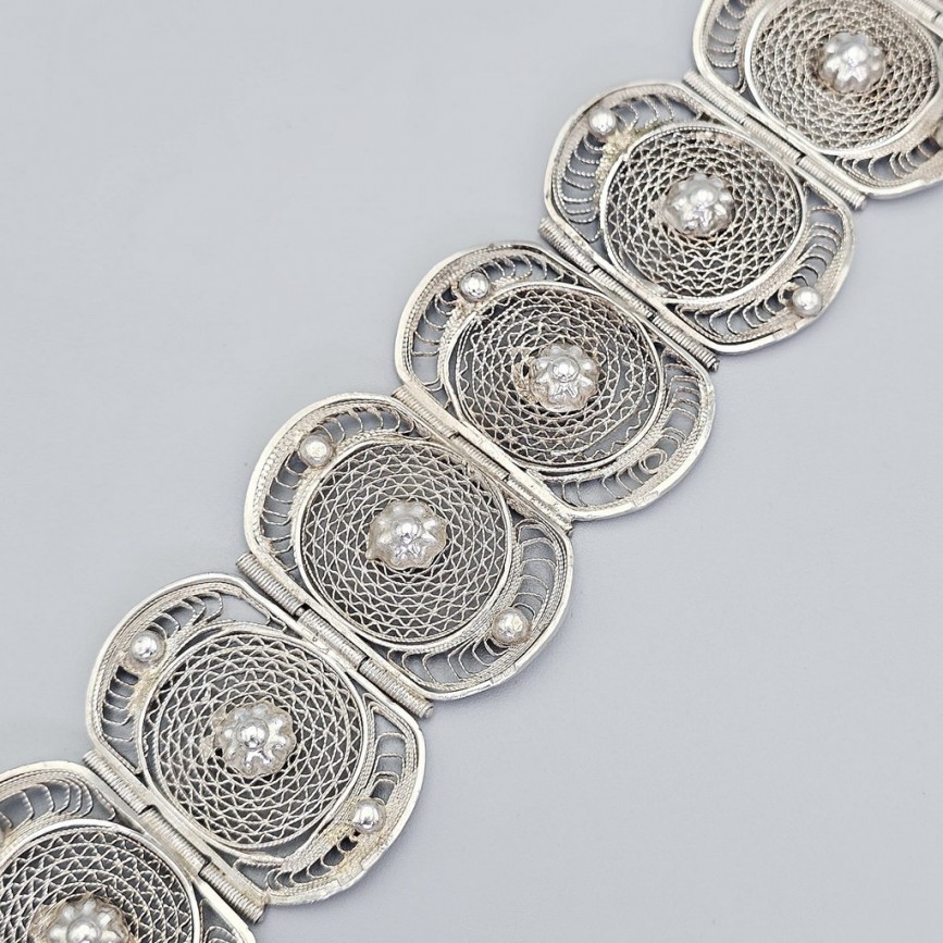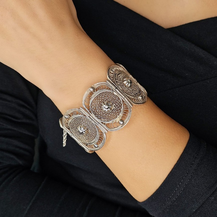 Veche brățară etnică balcanică manufacturată în argint filigranat.