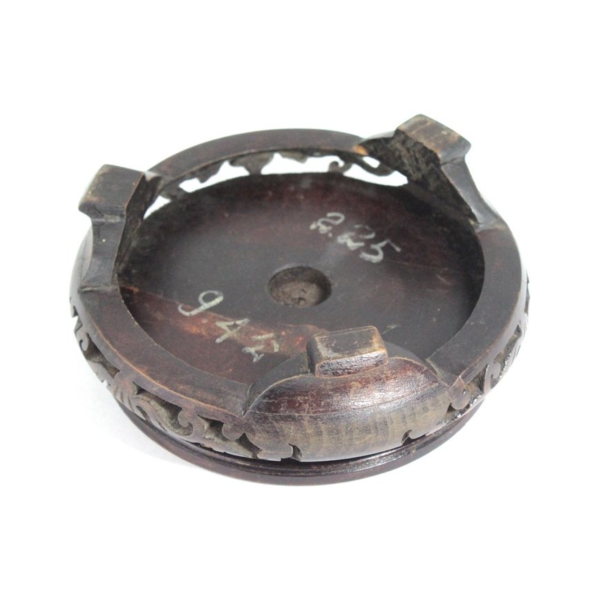 Vaza este însoțită de un postament realizat din lemn exotic, sculptat manual, în a-jour.