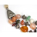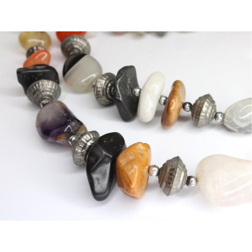 vechi colier tribal oriental, restaurat prin trecerea gemelor pe fire de guta si