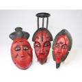 set de vechi masti Baoule, ilustrand portretele membrilor unei familii Akhan