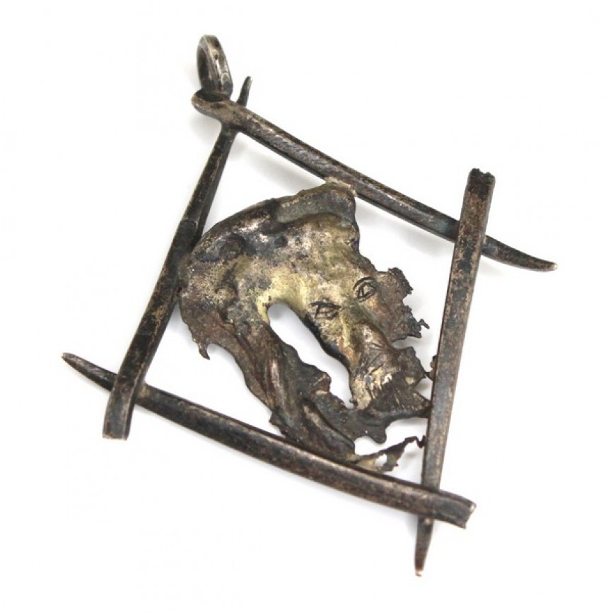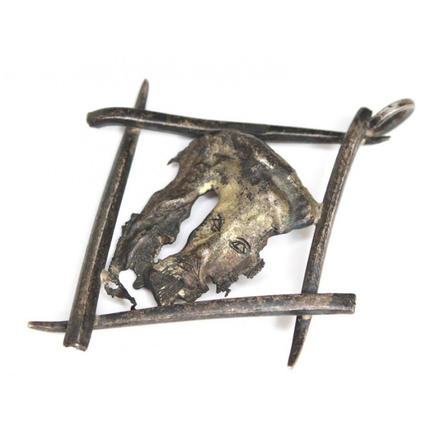 Vechi pandant religios pentru expunere parietală | Giulgiul din Torino | manufactură în argint - Italia