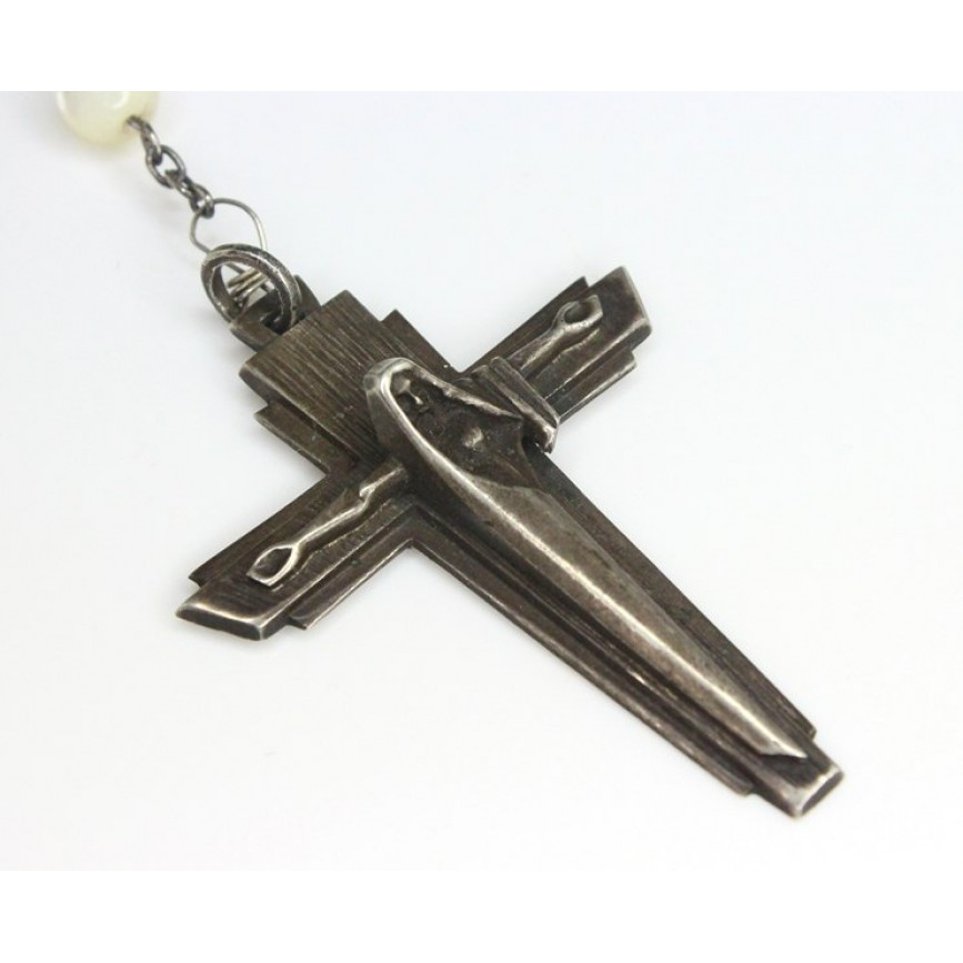 crucifix cu design elaborat prin geometrizare in maniera specifica stilului art deco